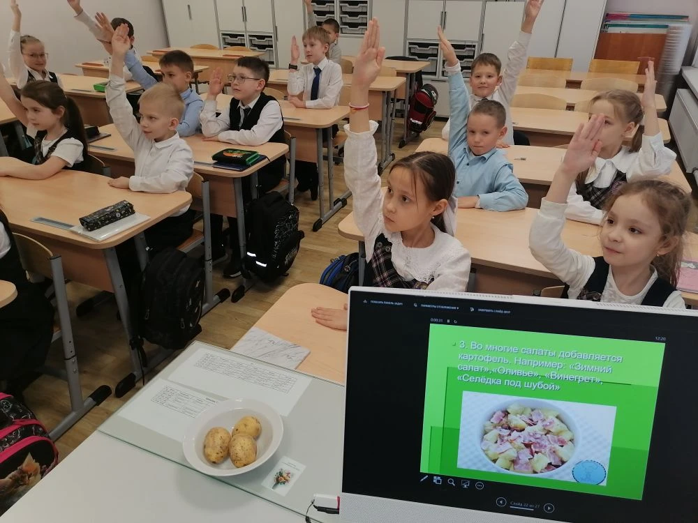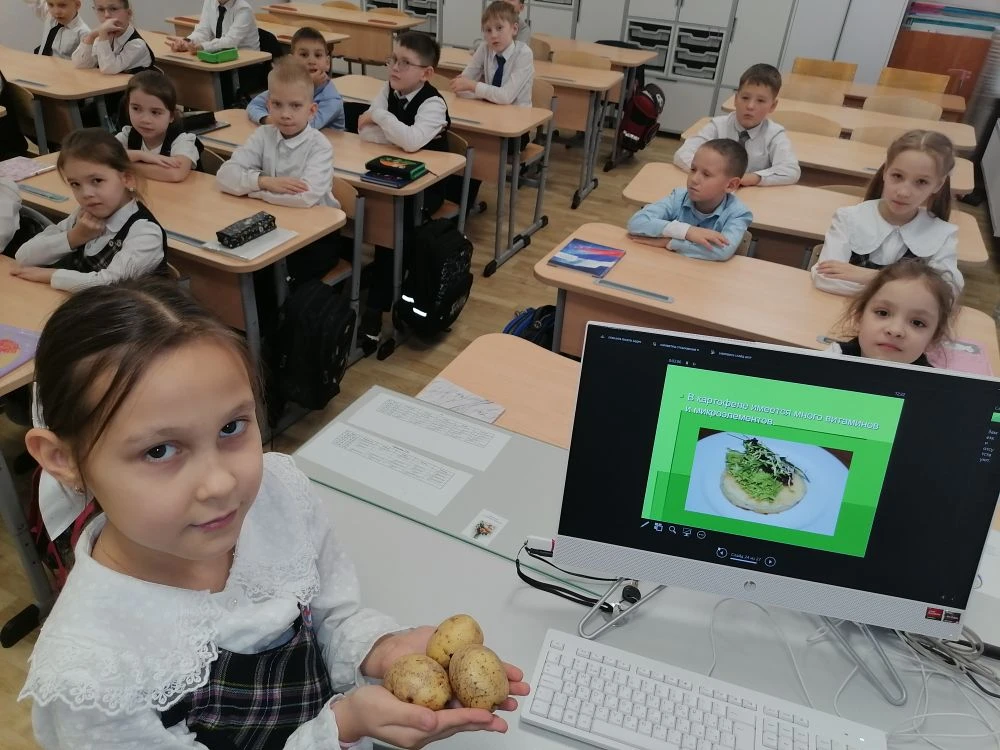 В ходе беседы школьники уточнили и дополнили знания о картофеле как о продукте питания, а также продукте, необходимом для лечения некоторых заболеваний. Ребята узнали, что в картошке содержатся полезные вещества, которые необходимые для нормальной жизнедеятельности человека. Дети также закрепили знания о вреде чипсов и картофеле фри, что при их употреблении, в организм попадают вредные вещества.