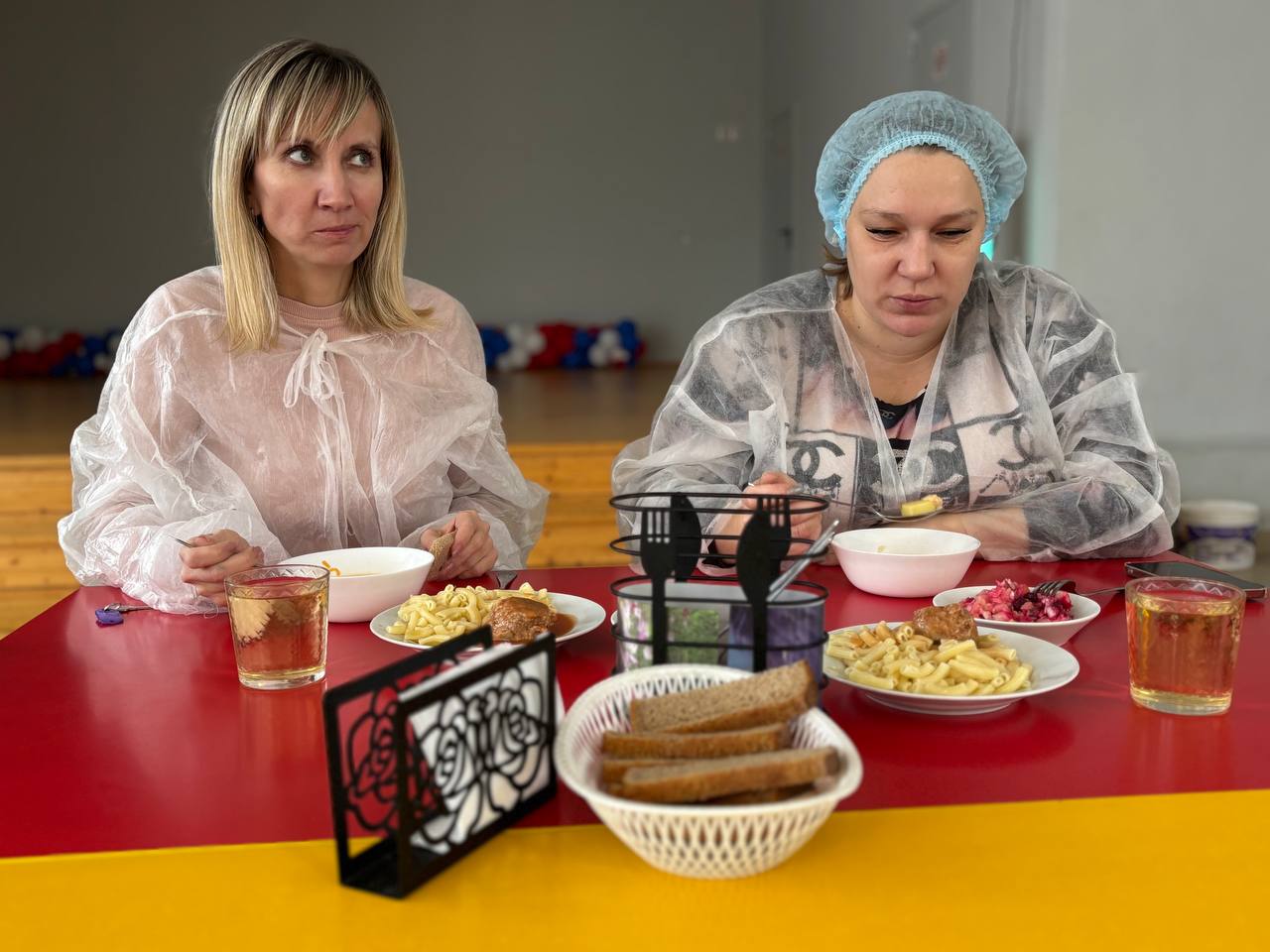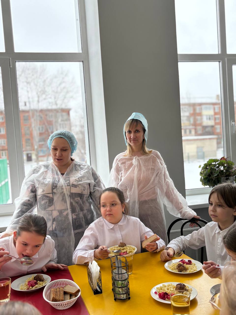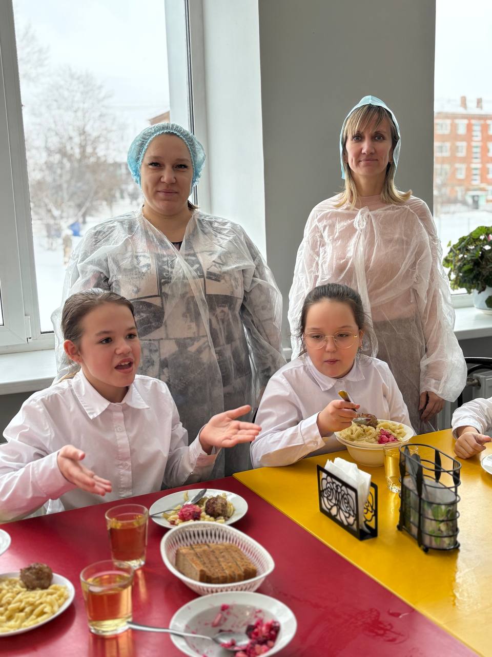 Со слов родителей, горячее питание в школе организовано с соблюдением всех предъявляемых требований. Наталья Валерьевна и Татьяна Александровна отметили, что приготовленная еда им очень им понравилась и отметили, что в столовой соблюдаются все нормы СанПиН.