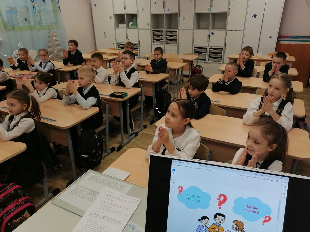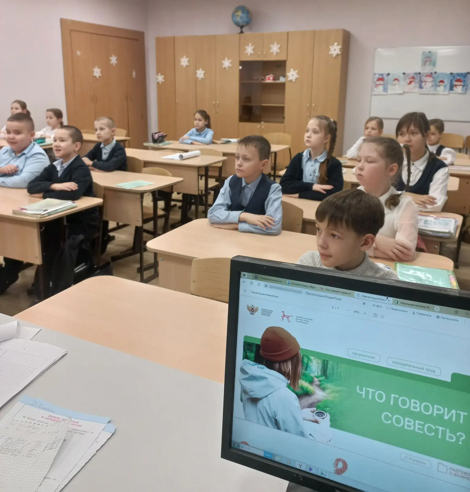 Школьники разбирались, что стоит за этим привычным словом и почему внутренний голос порой становится самым строгим судьёй, как отличить хороший поступок от плохого. Посмотрев фрагменты мультфильма «Пятачок», где герой сталкивается с нравственным выбором, обучающиеся младших классов поделились наблюдениями и обсудили увиденное.