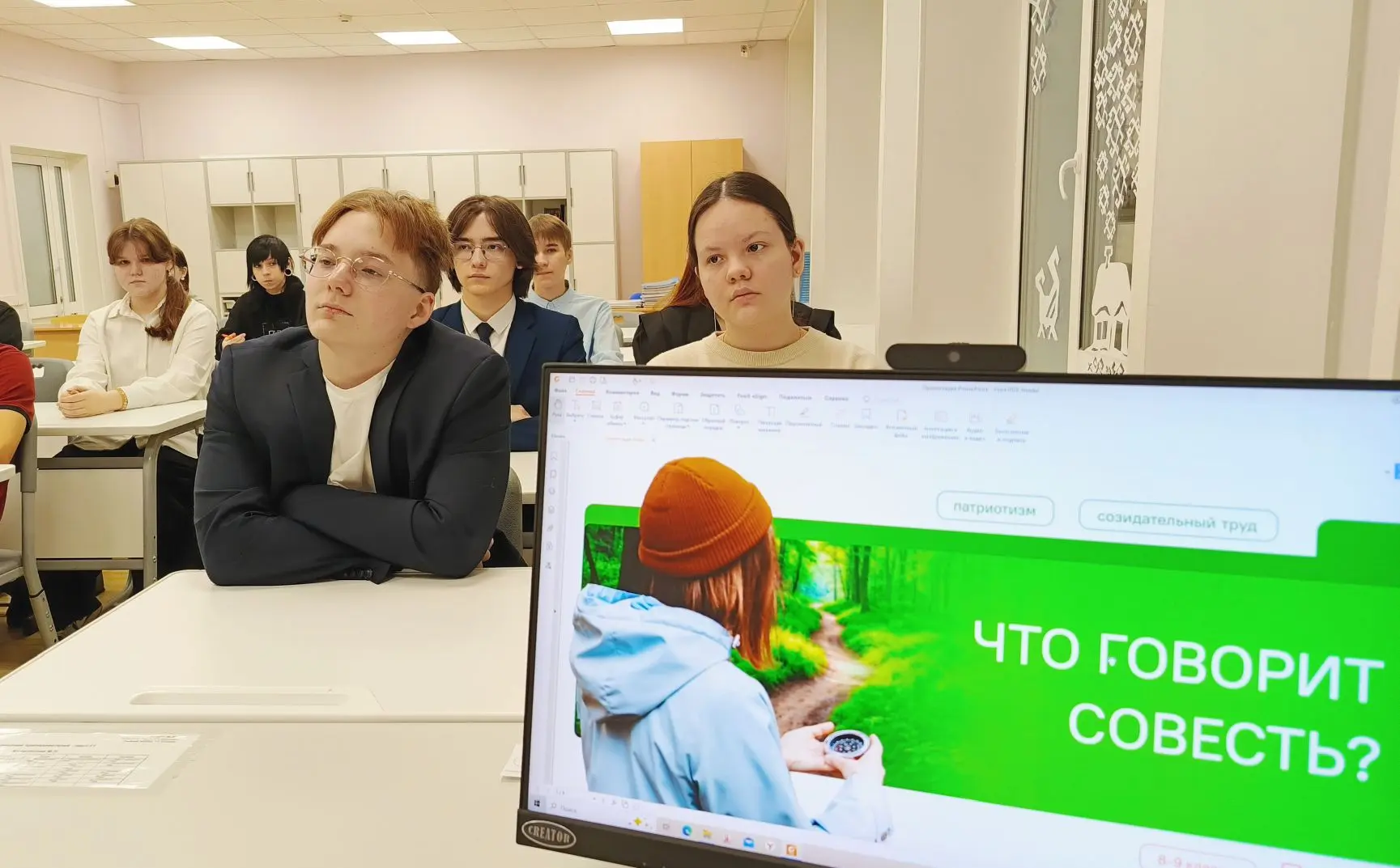 Старшеклассники посмотрели интервью с Шалвой Амонашвили — доктором психологических наук, академиком Российской академии образования. Ребята обсуждали, почему возникает стыд, когда мы игнорируем внутренний голос, и правда ли, что жизнь по совести делает её легче. Обучающиеся разбирали конкретные ситуации и поняли: даже в сложных обстоятельствах совесть остаётся «компасом», который помогает не сбиться с пути. Посмотрев фрагмент передачи «БесогонТВ», школьники решили, что совесть — это внутренний ориентир, помогающий оценивать свои поступки и определять, как поступить, когда нет чётких правил.Она связывает нас с другими людьми через доверие и уважение, а ее угрызения – сигнал, что мы отошли от собственных принципов и можем исправиться.