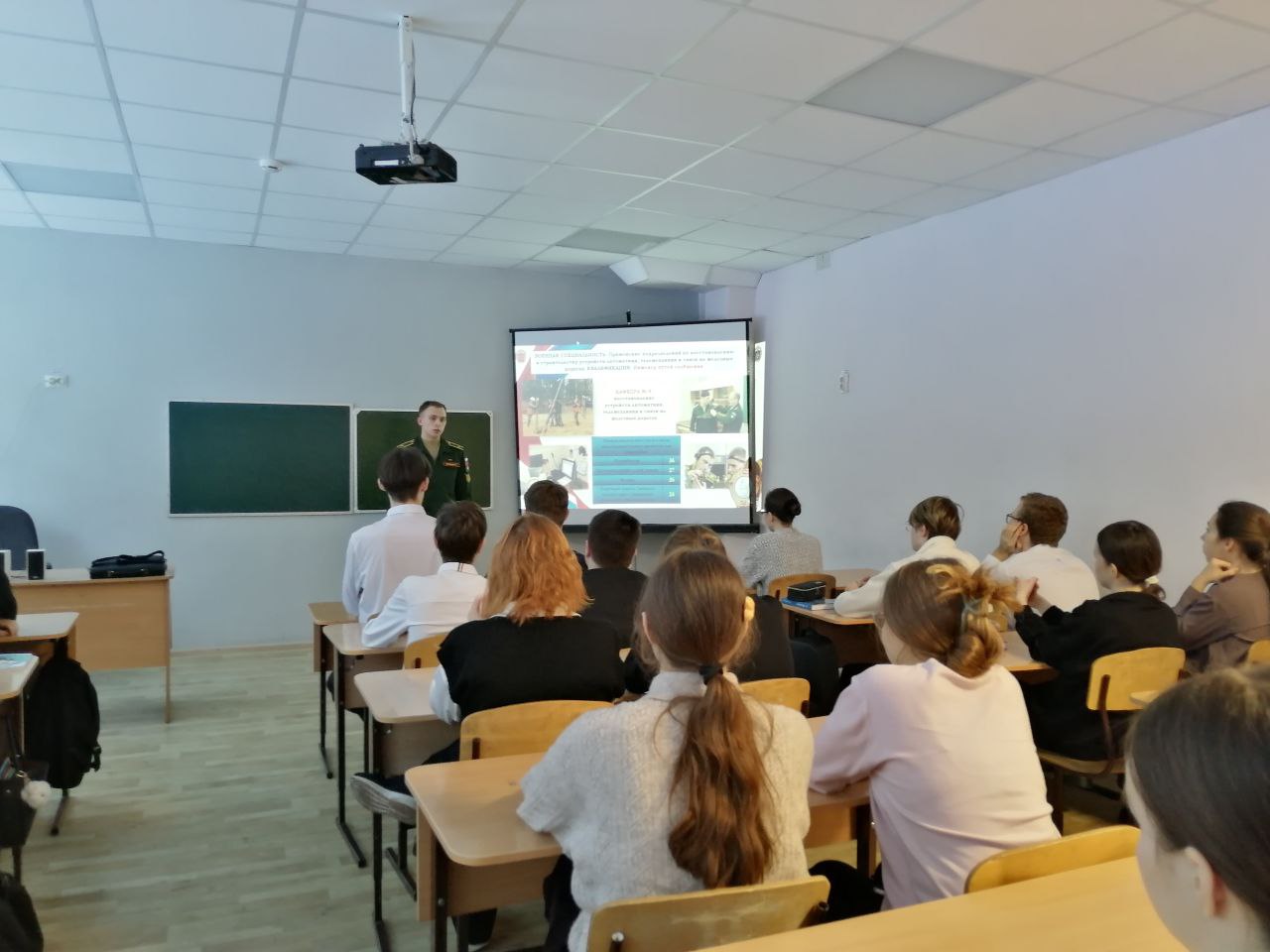Старшеклассники увидели видеопрезентацию академии, знакомящую с тонкостями образовательной программы, комфортными бытовыми условиями, организацией досуга и мерами социальной поддержки. Встреча прошла в тёплой, доверительной атмосфере, вызвав живой отклик среди школьников и вдохновив многих подумать о выборе достойной профессии военнослужащего.