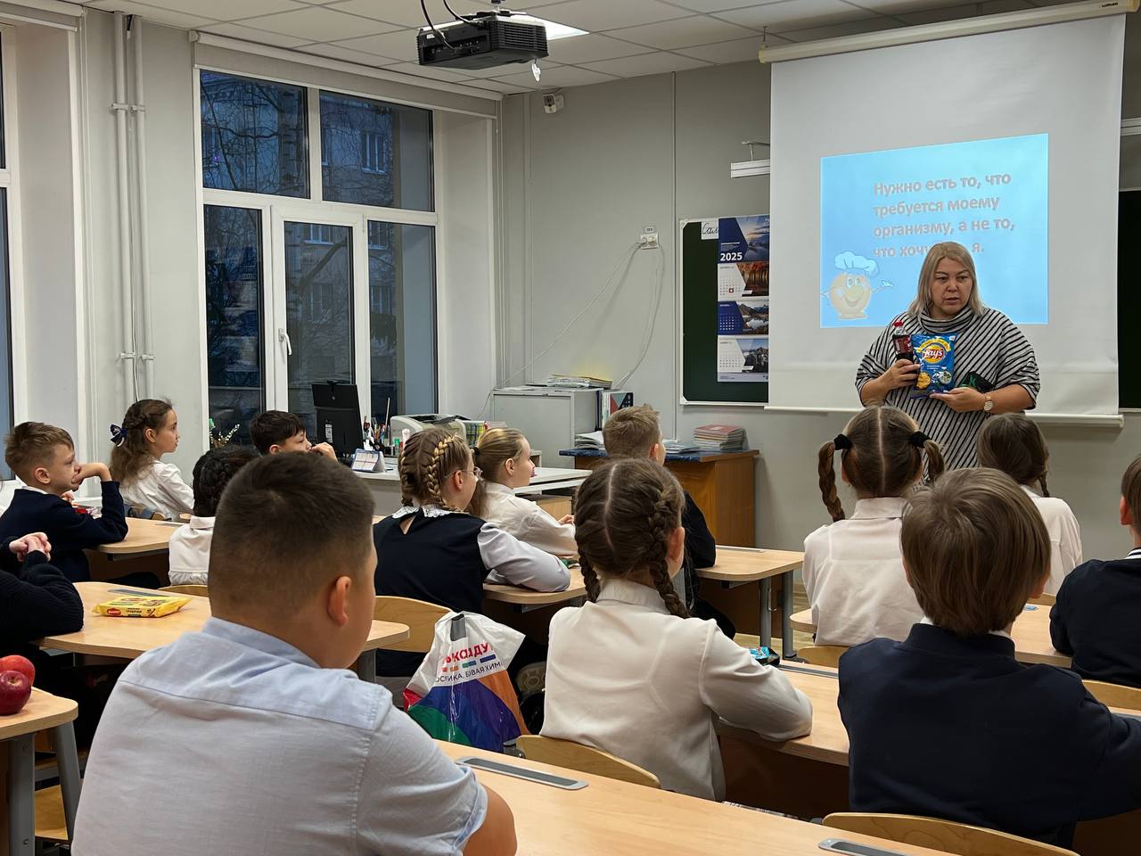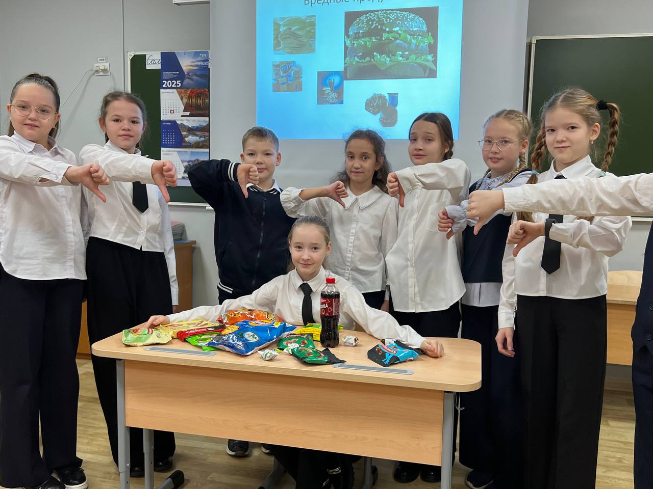 С целью формирования у детей представлений о здоровой пище, о вредных и полезных продуктах питания, о влиянии правильного питания на здоровье в 4н классе классный руководитель Н. В. Ильичева провела беседу «Вредные и полезные продукты».