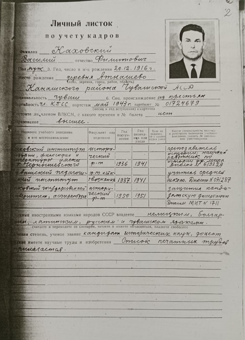 Участники кружка «Музейное дело» на очередном занятии 17 ноября 2025 г. изучили правила работы в фондах музеев, архивах и библиотеках, а также правила хранения и использования документов. Ребята познакомились с уникальными неопубликованными источниками - материалами из личного архива видного чувашского историка, археолога, этнографа, профессора Василия Филипповича Каховского. Это личные дела ученого, автобиография, трудовая книжка, характеристики, указы, распоряжения и директивы различных вузов и учреждений; почетные грамоты и прочие наградные материалы; списки научных трудов ученого; удостоверения, дипломы, аттестаты, отчеты о проделанной работе; выписки из протоколов заседаний кафедры, совета вузов и иных научных учреждений; фотографии, боевая характеристика как участника Великой Отечественной войны 1941-1945 гг; рукописи по важнейшим научным проблемам, в решение которых весомый вклад внес В.Ф. Каховский.