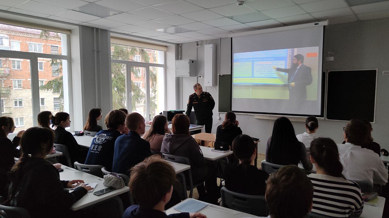Ко Дню спасателя было приурочено занятие цикла «Разговоры о важном» 24 ноября 2025 г., на котором обучающиеся говорили об обеспечении безопасности граждан и правилах поведения в чрезвычайных ситуациях. В 10а классе занятие провел заведующий кафедрой права Чебоксарского института (филиала.) Московского политехнического университета кандидат юридических наук Скворцов Евгений Николаевич.