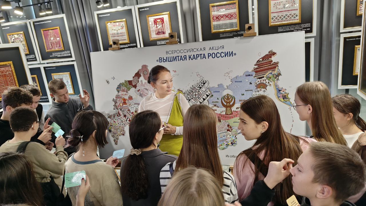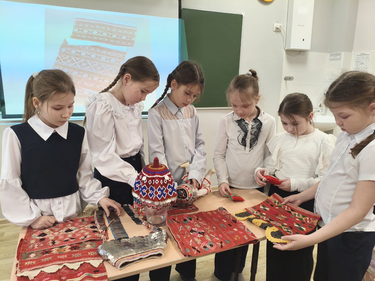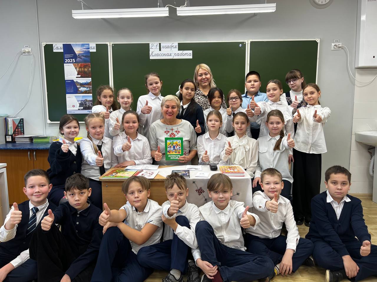 Обучающиеся 8а класса посетили Музей вышитой карты России. На экскурсии они узнали об истории создания карты, как 260 мастеров из разных уголков страны трудились, стараясь с помощью вышивки передать особенности своего региона. После экскурсии дети участвовали в тематических играх. Обучающиеся 4 н класса встретились с поэтессой Альбиной Юрату. Альбина Юрату рассказала детям о себе, познакомила со своим творчеством, прочитала произведения на русском и чувашском языках. Учителя и обучающиеся 7-8-х классов участвовали в краеведческой викторине «Живопись нитей: очарование чувашской вышивки», организованной МАУК «Объединение библиотек г. Чебоксары». Ребята узнали об истории чувашской вышивки, значении каждого орнамента, почему именно 26 ноября было выбрано днём чувашской вышивки.