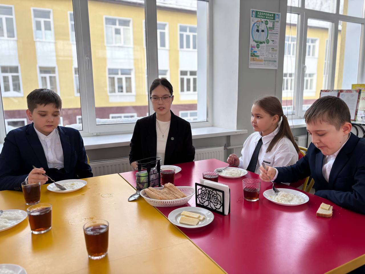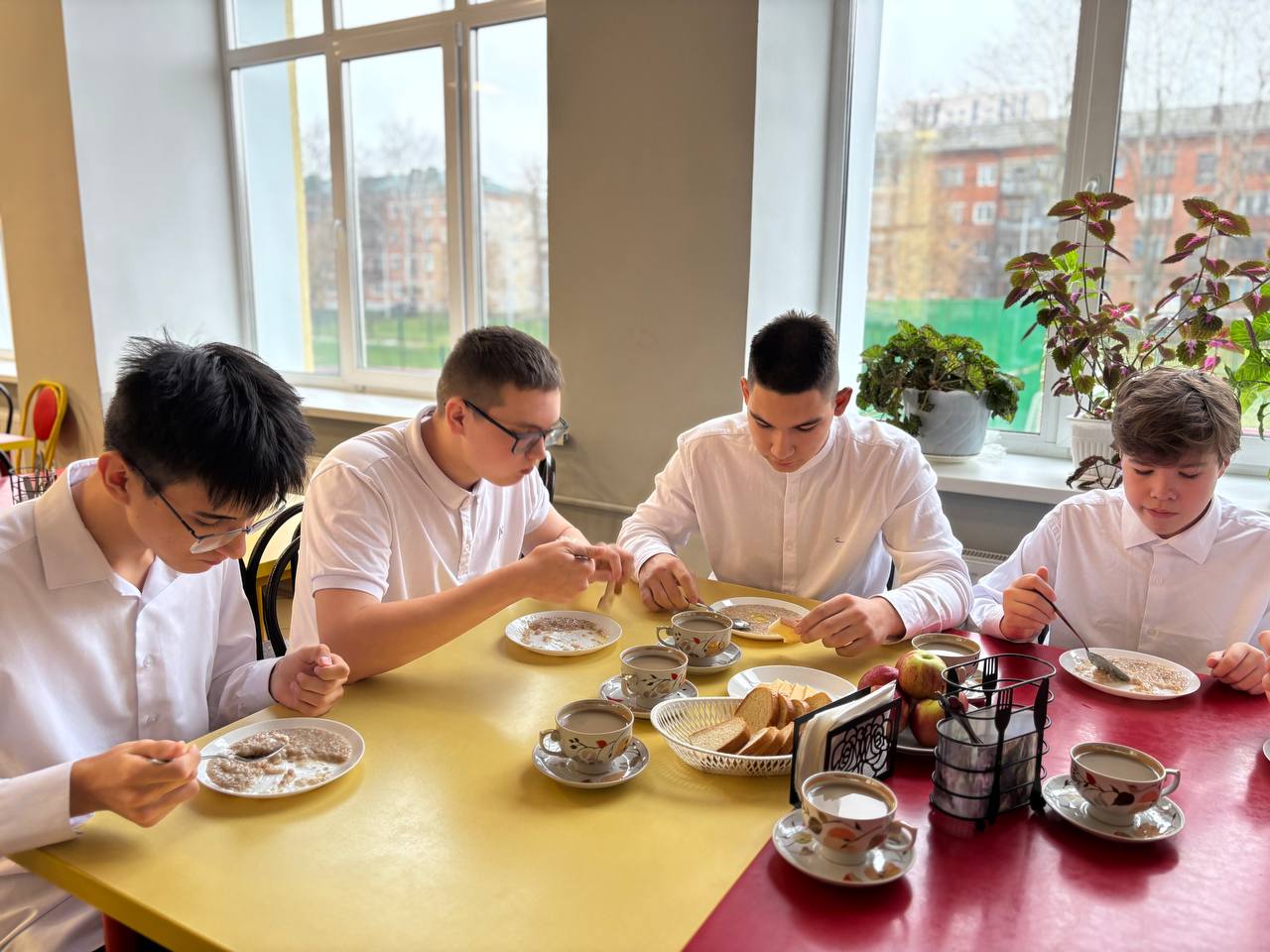 За завтраком ребята поделились своими предпочтениями в еде и отметили, что именно правильное питание обеспечивает рост, нормальное развитие и жизнедеятельность человека. Особенно полезна на завтрак каша. В ней много питательных веществ для развития молодого организма.