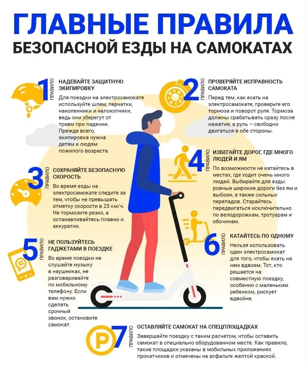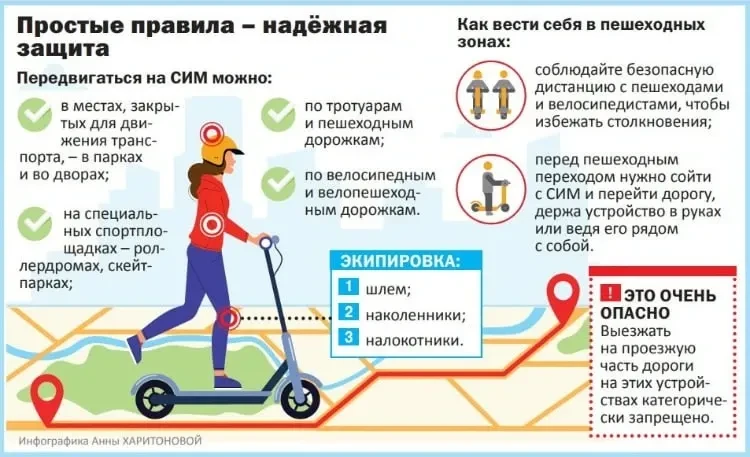 - детям до 7 лет можно использовать СИМ с двигателем только в рекреационных зонах и в сопровождении взрослых;