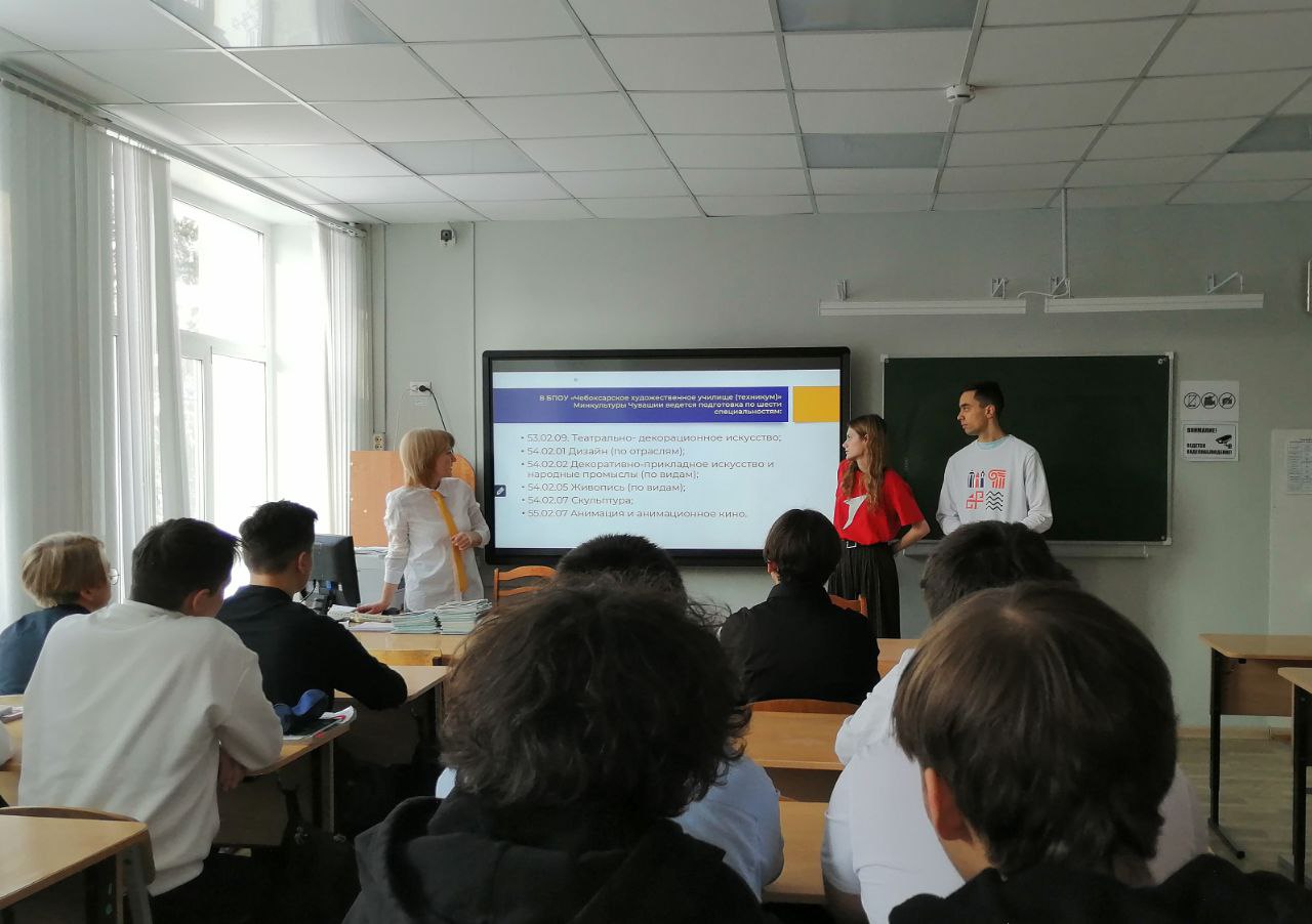 В рамках программы профориентационной работы состоялась важная встреча учащихся 8-9-х классов школы №24 с представителями старейшего образовательного учреждения республики — Чебоксарского художественного училища.