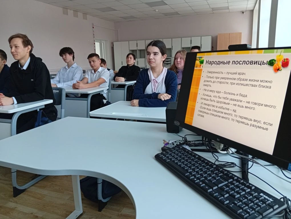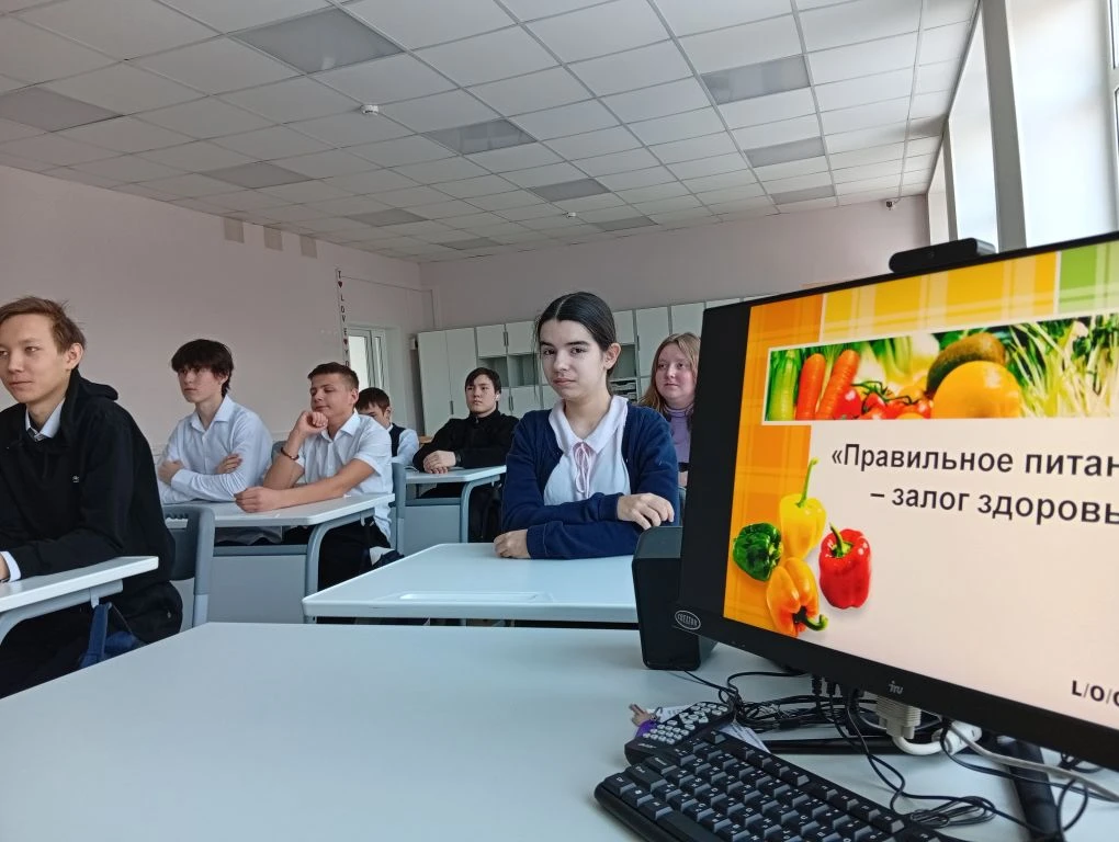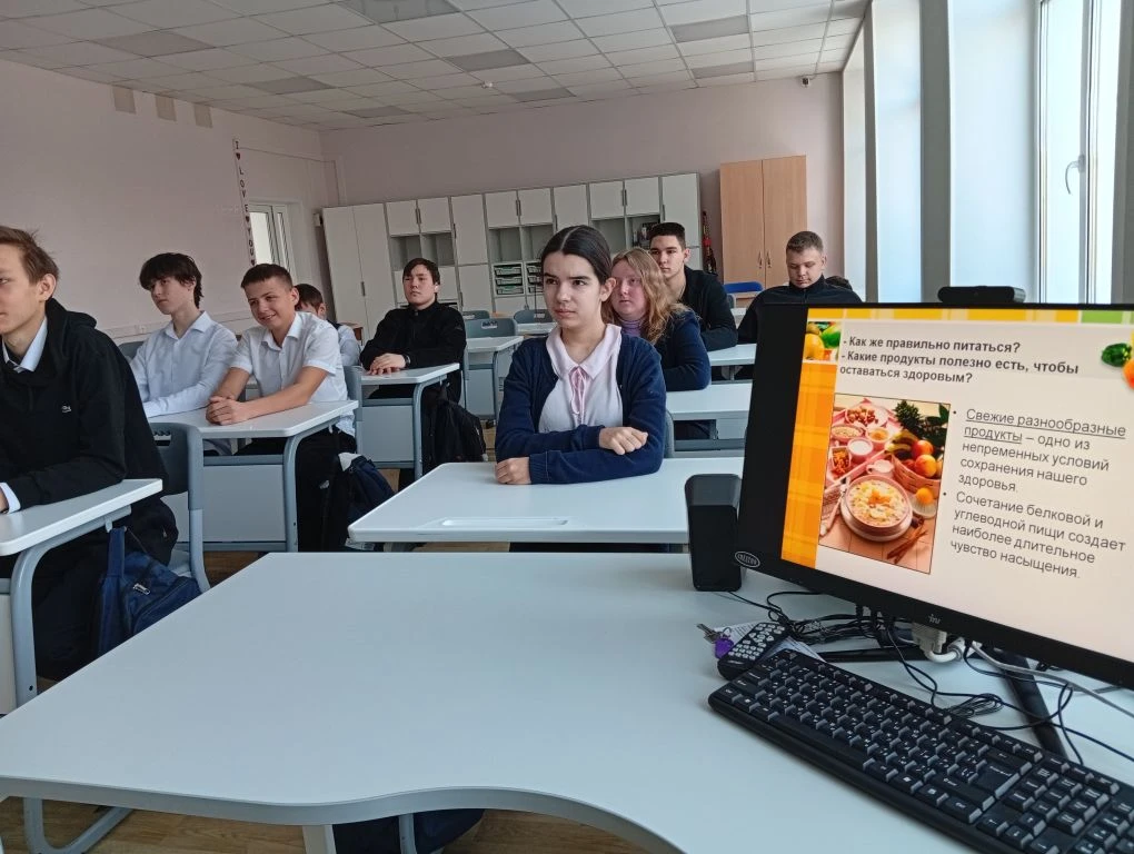 Сегодня в 9б классе прошёл классный час, посвящённый важности правильного питания для здоровья. Мероприятие было организовано с целью повышения осведомлённости школьников о принципах здорового питания и его влиянии на организм.