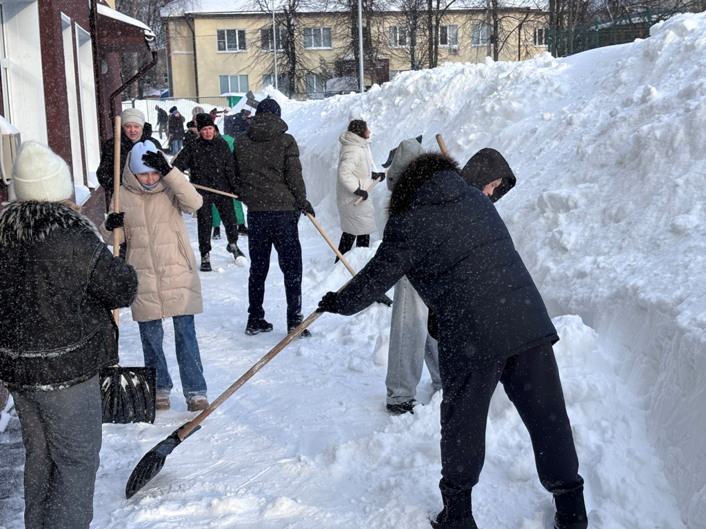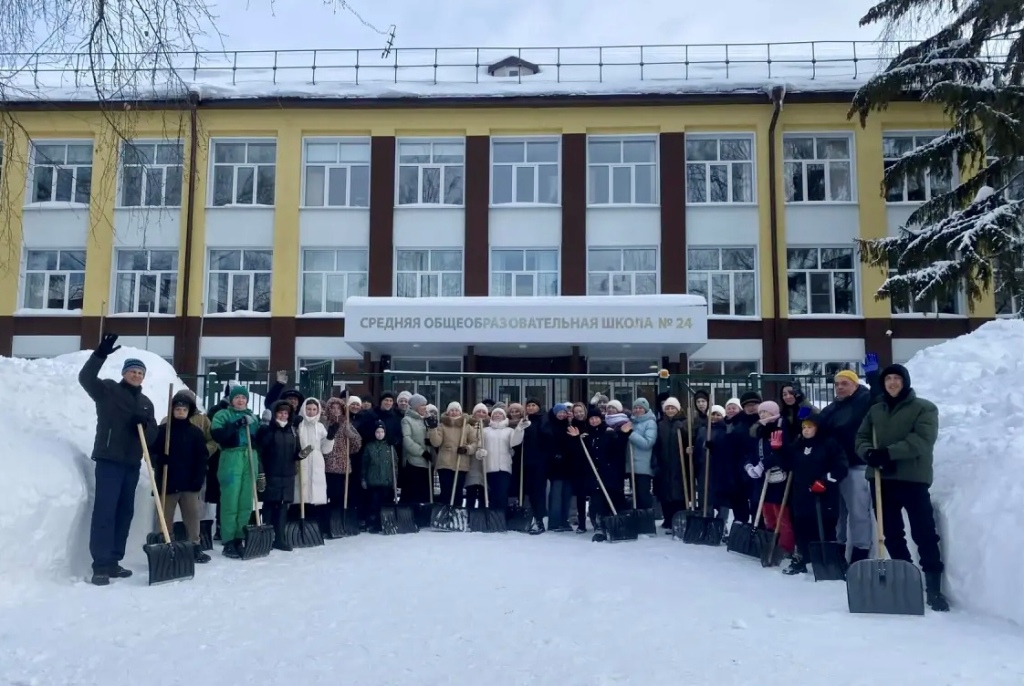 21 февраля 2026 года, коллектив школы, родители и обучающиеся вышли на общегородской субботник и акцию «Помоги дворнику».