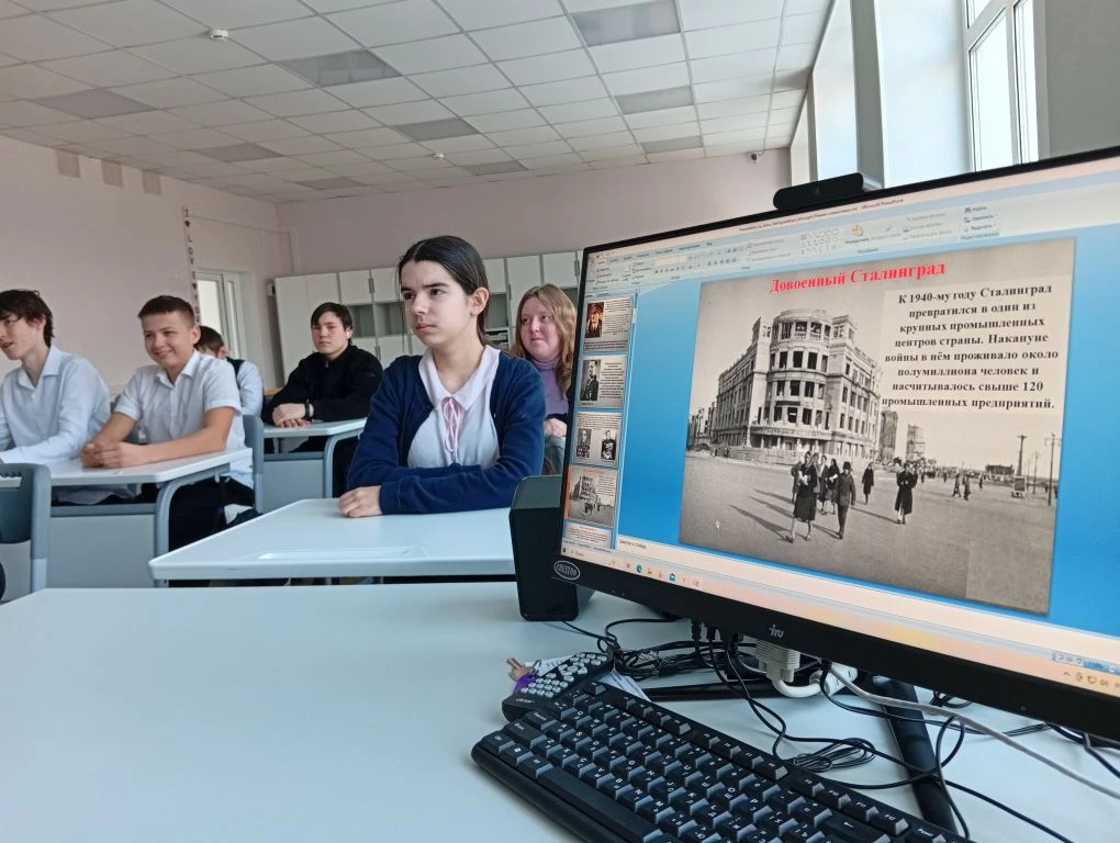 Педагоги рассказали школьникам о мужестве жителей города, которые преодолевали холод и голод, помогали нашим войскам.