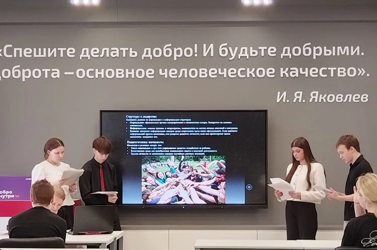 Школьники узнали о мерах поддержки молодых педагогов, включая программу «Земский учитель» с выплатами до 2 млн рублей, и разработали волонтёрские проекты, которые помогут попробовать себя в роли наставника уже в школе.