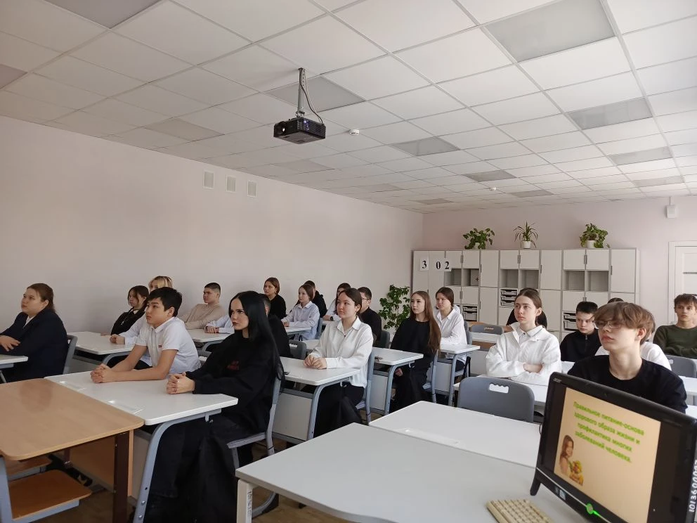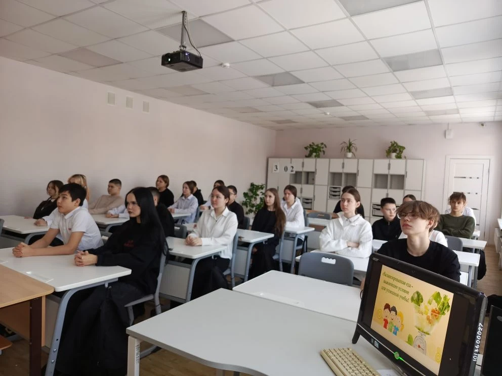 Зачем нужно заботиться о своем рационе? Как еда может становиться не только полезной, но и вкусной? Об этом и не только узнали обучающиеся 8б класса на классном часе «Правильное питание – основа здорового образа жизни», который прошел 12 марта 2026 г.