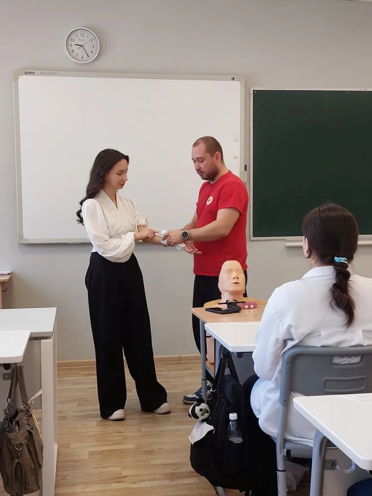 Школьники всех возрастов – от первоклассников до выпускников – познакомились с важными аспектами оказания экстренной помощи. Они узнали, как правильно действовать в критической ситуации: останавливать кровотечение, оказывать первую помощь при потере сознания, распознавать признаки отравления и помогать пострадавшим от ожогов. Особое внимание уделялось практической части занятий: ученики осваивали технику наложения повязок, шин и даже попробовали провести искусственное дыхание.