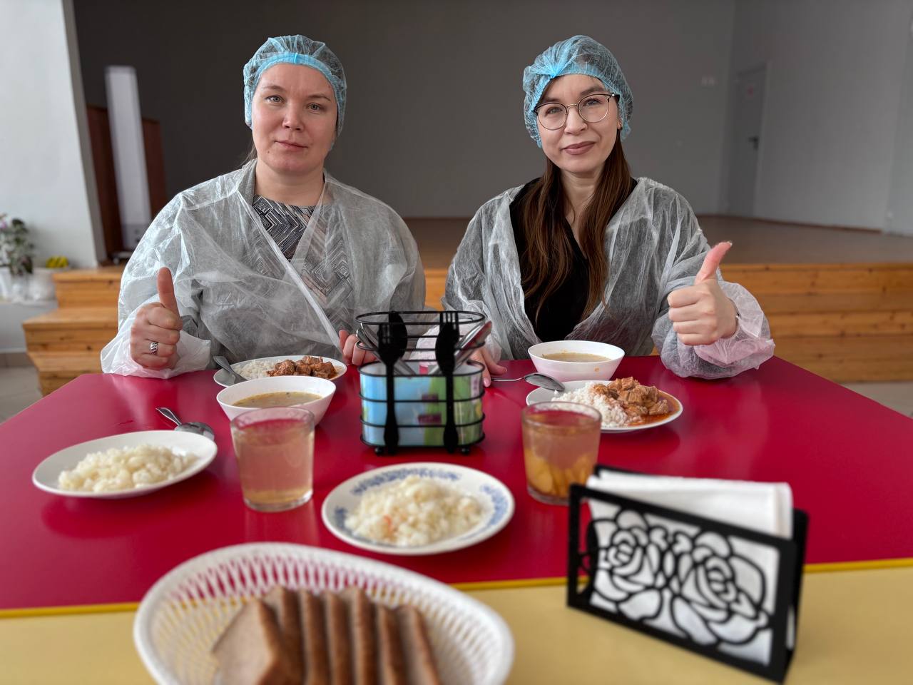 Василиса Олеговна и Марина Петровна отметили, что приготовленная еда им очень им понравилась и отметили, что в столовой соблюдаются все нормы СанПиН.