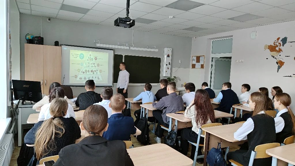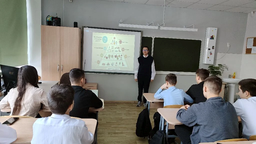Сегодня в 8а классе прошел классный час «Пирамида здорового питания».