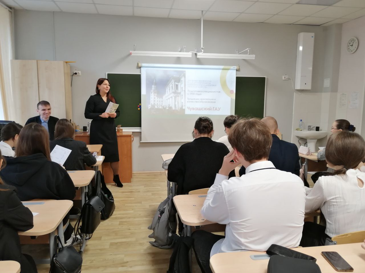 В рамках недели профориентации старшеклассники школы №24 столицы встретились с представителем Чувашского государственного аграрного университета. Светлана Евгеньевна Водяная, заместитель ответственного секретаря приёмной комиссии, рассказала о вузе, специальностях, правилах приёма, необходимых экзаменах и баллах. Она также поделилась особенностями и преимуществами целевого обучения.