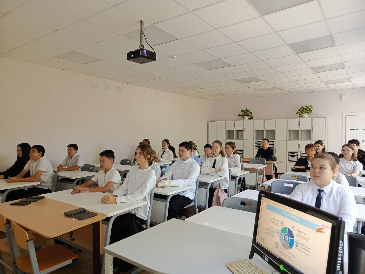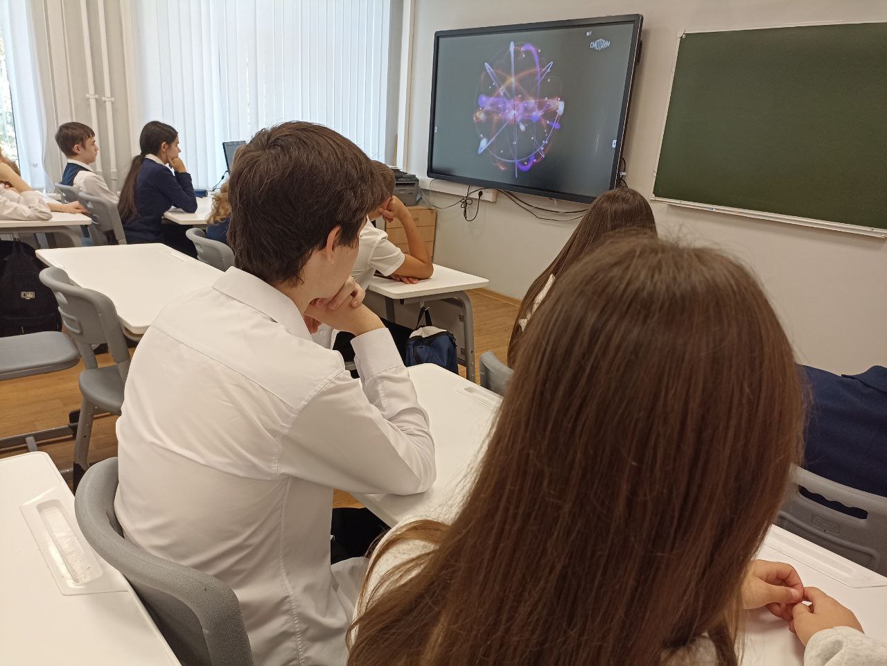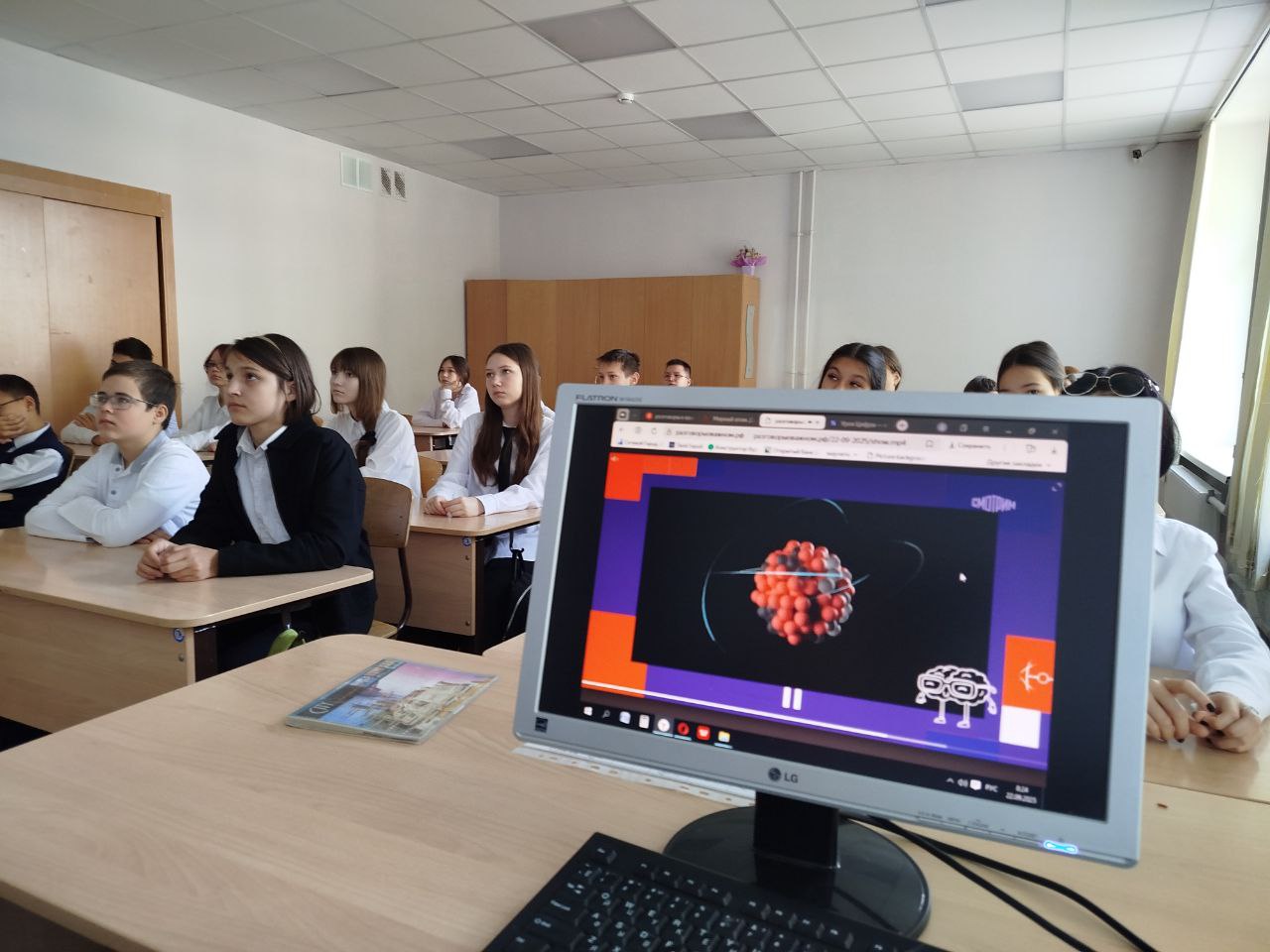 В 5–7-х классах урок дополнил рассказ об атомных электростанциях и просмотр фрагмента выпуска телешоу «Классная тема» с Михаилом Скрипкиным «Об энергии атома». Обучающиеся отправились в увлекательное виртуальное путешествие по миру атомных технологий и узнали, над чем российские атомщики трудятся сегодня.
