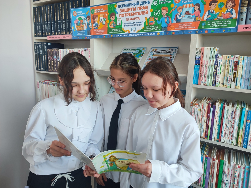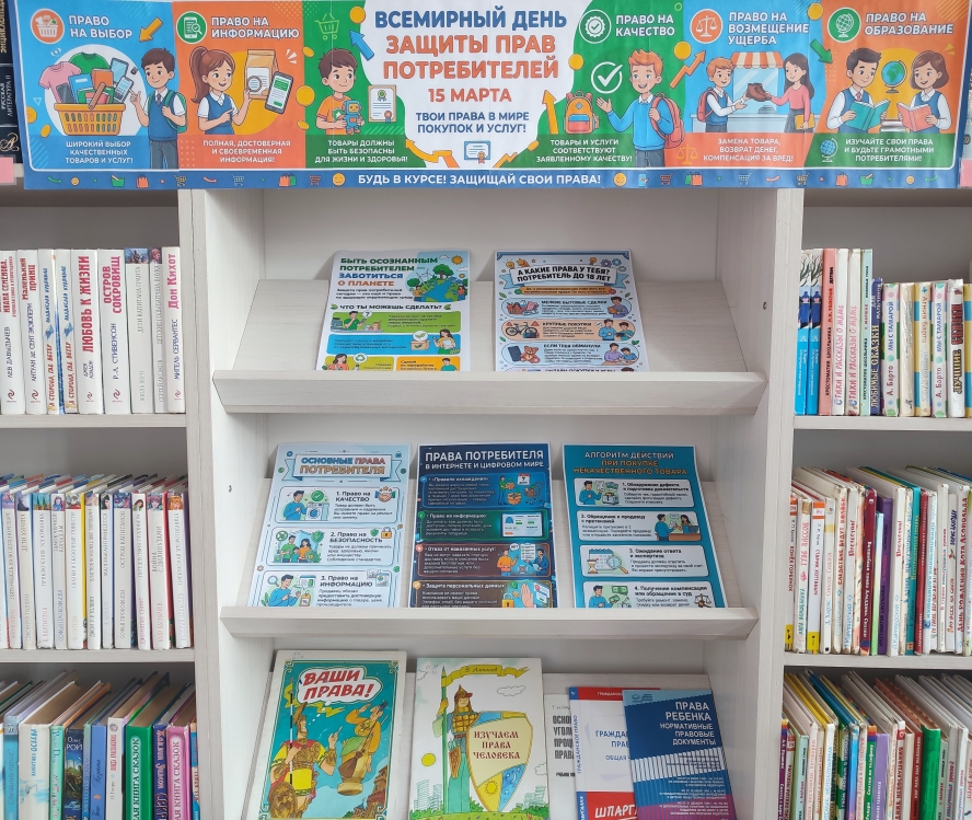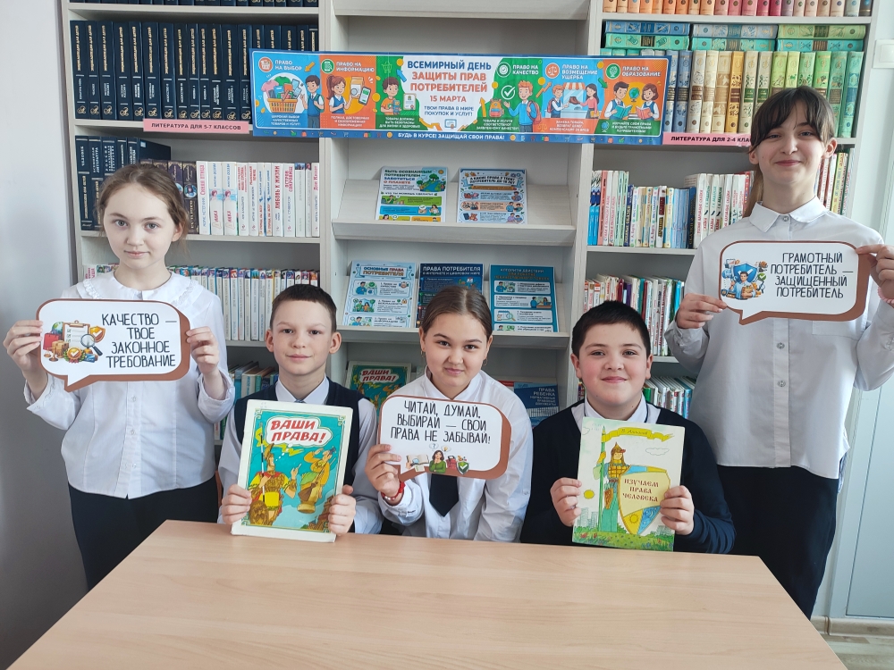Школьный библиотекарь Андреева Т. Н. организовала тематическую выставку и познакомила юных участников с основами закона РФ «О защите прав потребителей», рассказала о ключевых правах и обязанностях каждого потребителя.