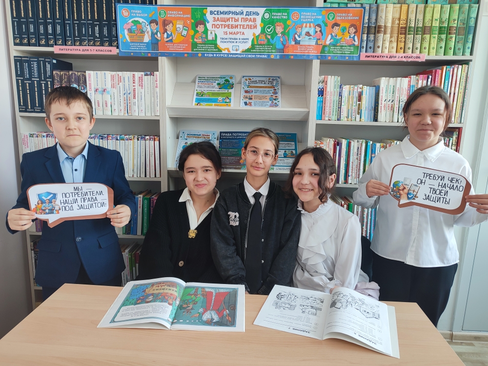 В честь Всемирного дня защиты прав потребителей в школьной библиотеке состоялся правовой час «Грамотный потребитель».