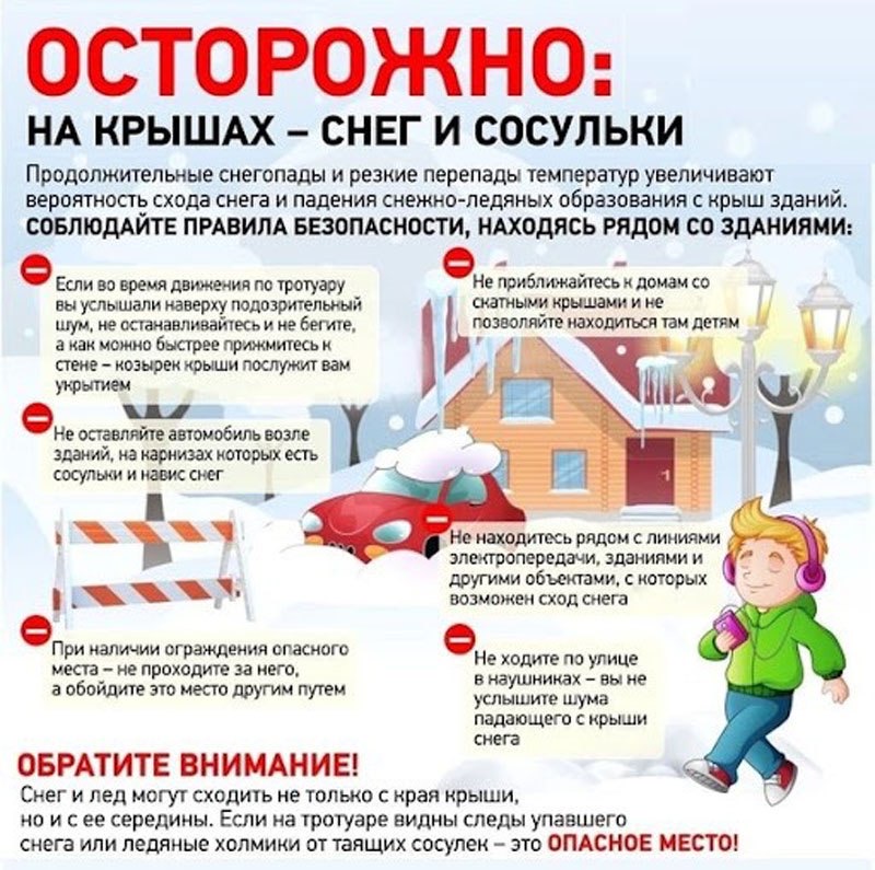 С приходом тепла на крышах домов скапливаются большие массы снега и наледи. Падение сосульки или снежной глыбы может привести к тяжелым травмам.