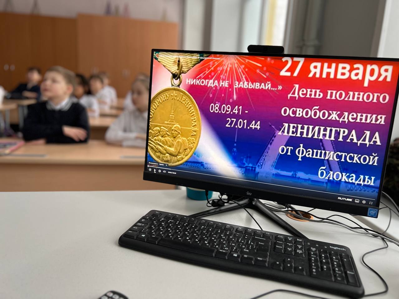 В рамках памятных мероприятий, посвященных полному снятию блокады Ленинграда с целью расширения знаний детей о войне и трагических страницах жизни в блокадном Ленинграде, пробуждения в детях чувства сострадания и гордости за стойкость своего народа в период блокады Ленинграда в 1-11 классах прошли Уроки мужества «Мы помним и чтим твой подвиг, Ленинград».