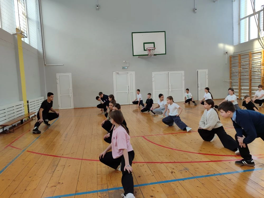 Зарядку с обучающимися 5а класса провел ученик 9б класса Миронов Р., многократный победитель и призер Международных и Всероссийских Чемпионатов мира по каратэ до Шотокан Рю Казэ Ха.