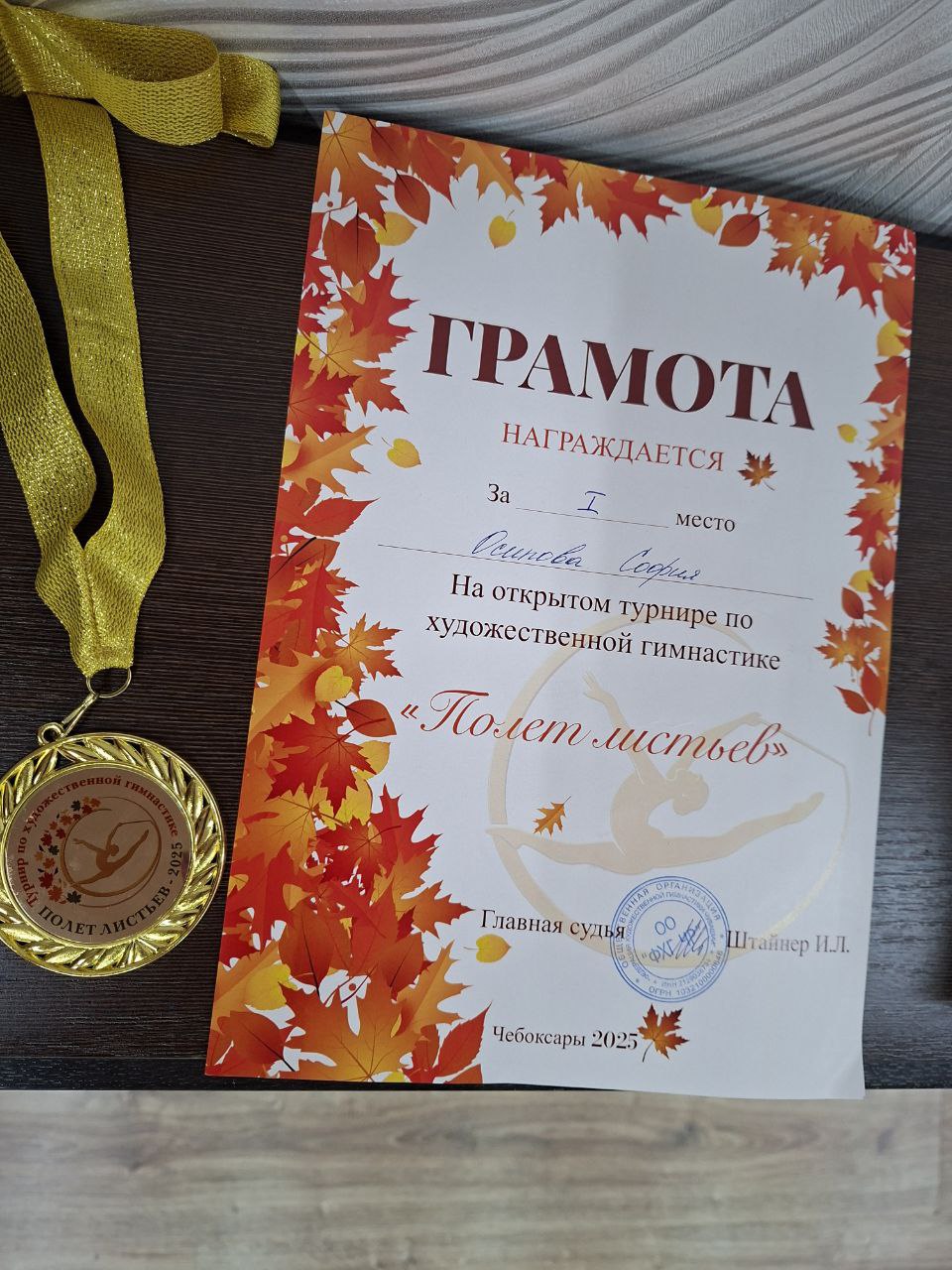 Поздравляем ученицу 4с класса Осипову С. с победой на турнире городов России по художественной гимнастике «Полёт листьев»!