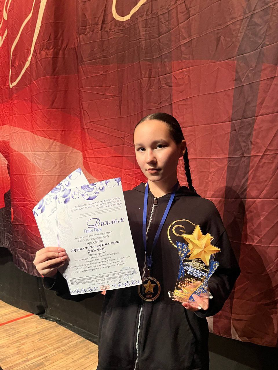 6 декабря 2025 г. в г. Нижний Новгород состоялся Всероссийский конкурс-фестиваль «Счастливая звезда». С огромной гордостью сообщаем, что наша Лера К. (8а класс) получила главную награду — Гран-при!
