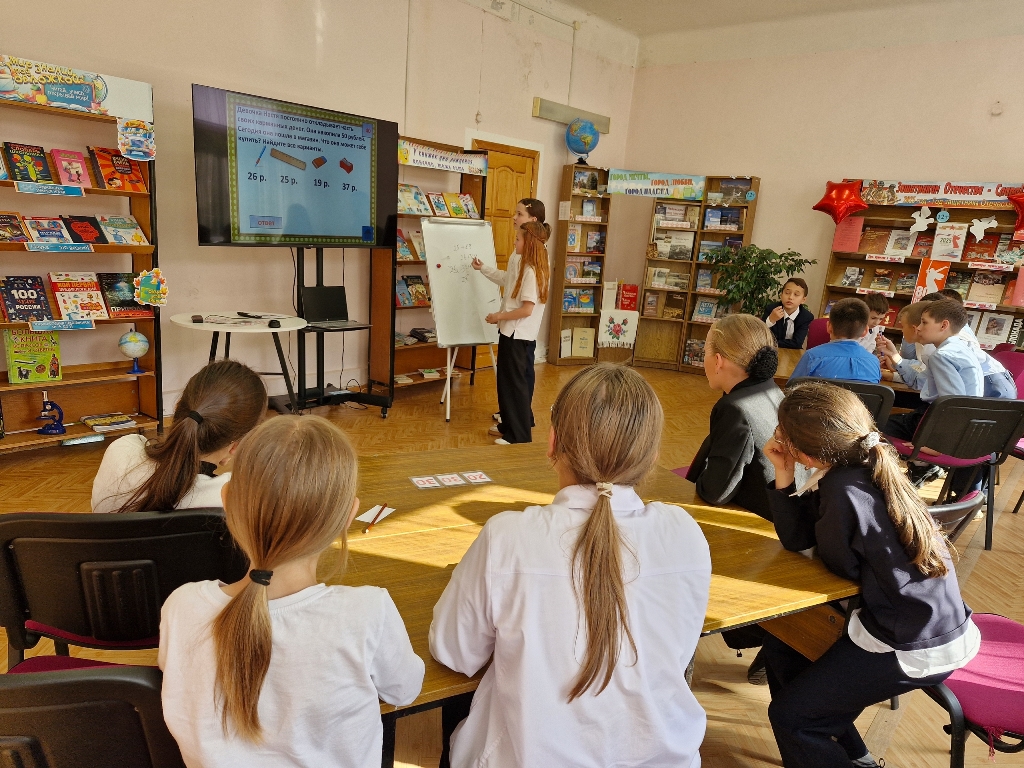 В рамках школы финансовой грамотности «Финансовая азбука» 23 сентября 2025 г. обучающиеся 5в класса приняли участие в экономической игре «Деньги любят счет» на базе библиотеки им. А. С. Пушкина. Данная школа создана для того, чтобы помочь детям освоить основы управления деньгами, научиться планировать свои расходы и фиксировать доходы.