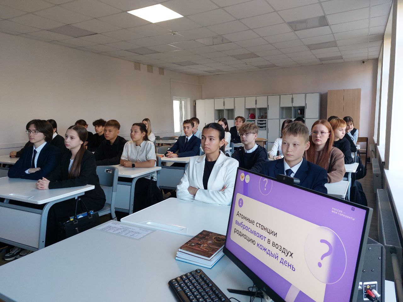 На уроке, посвященном 80-летию атомной промышленности России, школьники познакомились с отраслью, благодаря которой вырабатывается огромное количество энергии, а такие сферы, как судоходство, медицина и космическая отрасль становятся ещё более эффективными.