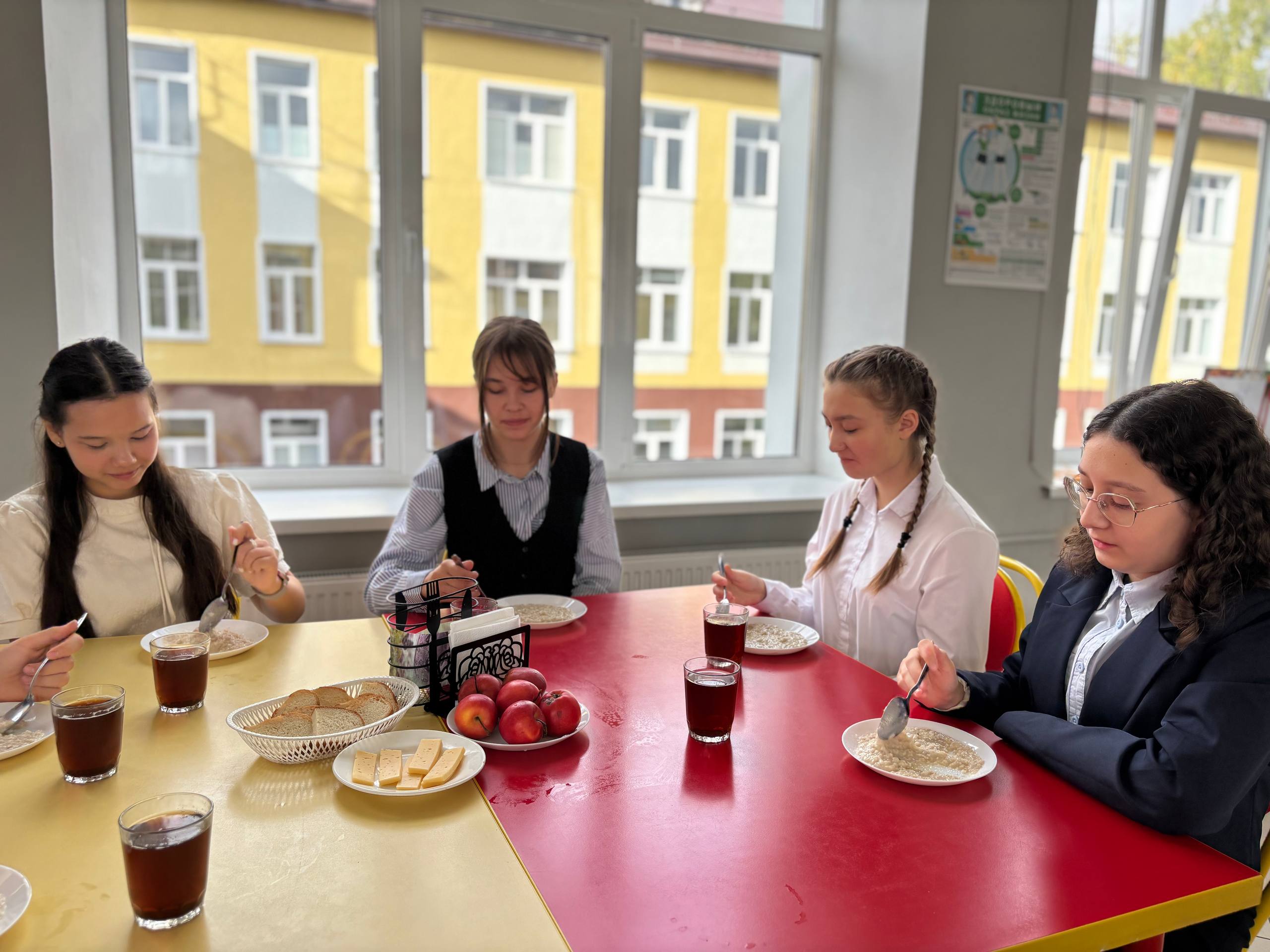 За завтраком ребята поделились своими предпочтениями в еде и отметили, что именно правильное питание обеспечивает рост, нормальное развитие и жизнедеятельность человека. Особенно полезна на завтрак каша. В ней много питательных веществ для развития молодого организма.