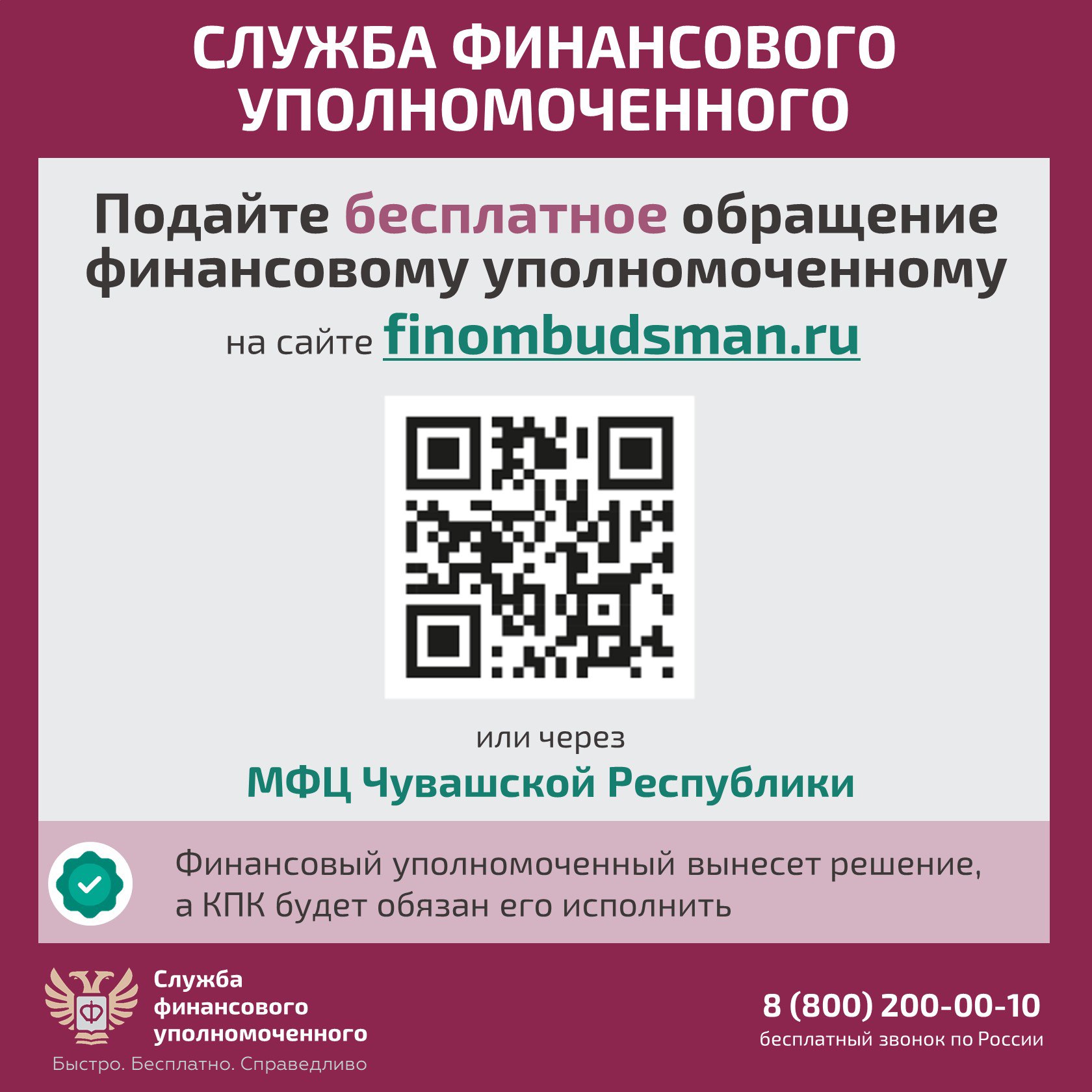 Направить обращение финансовому уполномоченному можно через личный кабинет на сайте finombudsman.ru или через МФЦ Чувашской Республики.