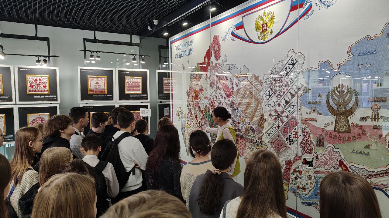 В рамках федерального проекта «Пушкинская карта» 21 ноября 2025 г. обучающиеся 8а класса посетили выставку «Вышитая карта России» и зарядились невероятной гордостью за нашу страну!