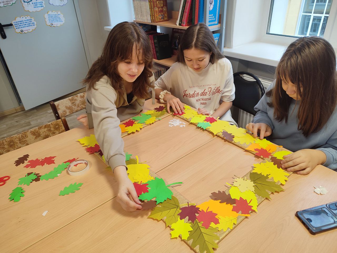 Вот и девочки из кружка «Юный дизайнер» на очередном кружковом занятии 28 октября 2025 г. своими руками изготовили фотораму, которую украсили разноцветными бумажными листьями. Это отличная идея для веселой детской осенней фотосессии. «Если на улице пасмурно и дождливо, а вы запланировали фотосессию на природе на фоне ярких осенних пейзажей, не огорчайтесь. Вас выручит фоторама «Осень золотая», – так говорят юные дизайнеры.