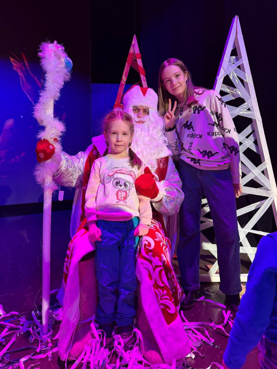 После спектакля был интерактив с Дедом Морозом и бумажное шоу.