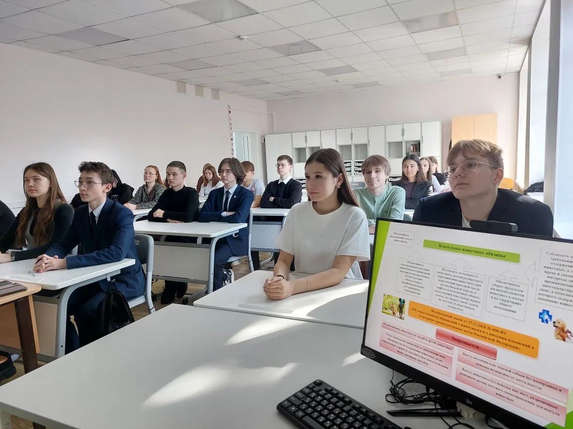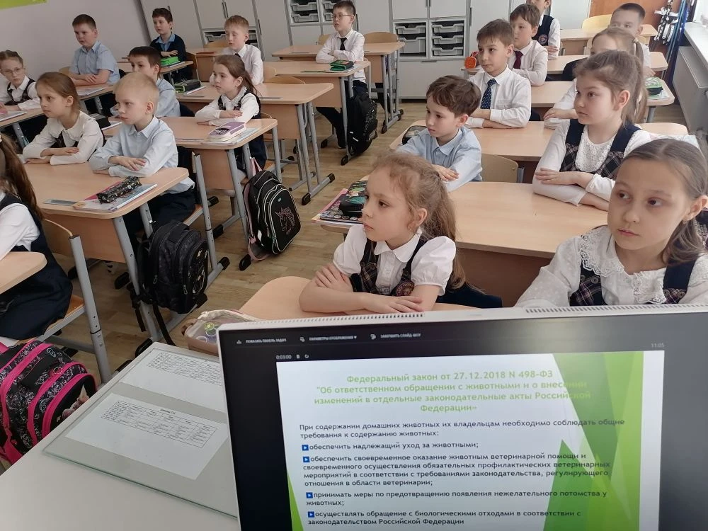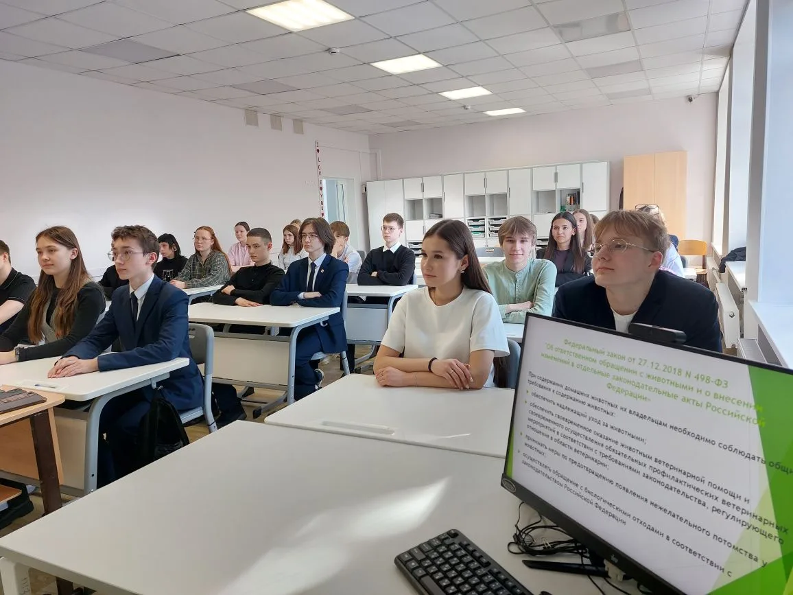 Обучающиеся 5-11 классов ознакомились с основными требованиями Федерального закона от 27 декабря 2018 г. № 498- ФЗ «Об ответственном обращении с животными» и активно участвовали в беседах о гуманизме и важности внимательного отношения к животным.