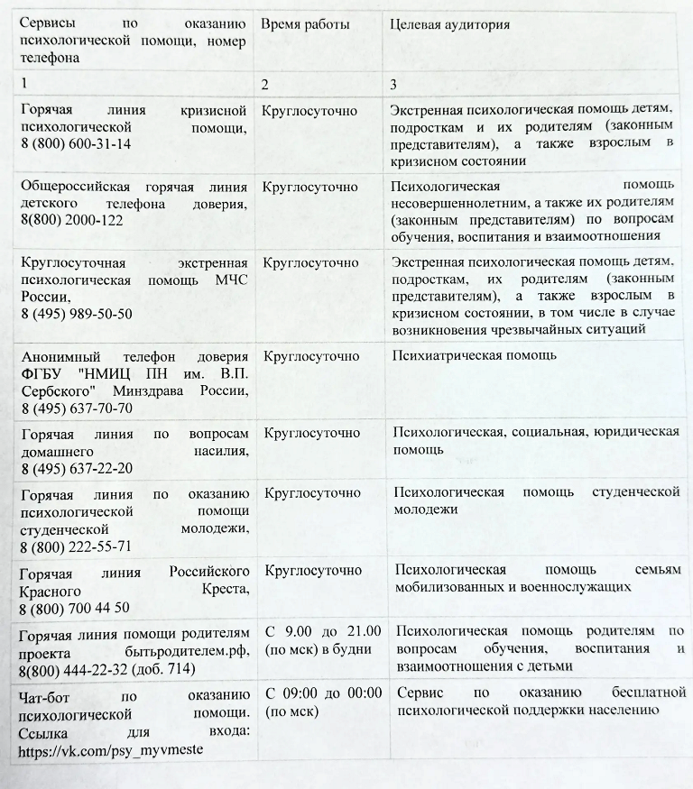 Дорогие родители! Информируем вас о возможностях и ресурсах получения психологической помощи и поддержки.